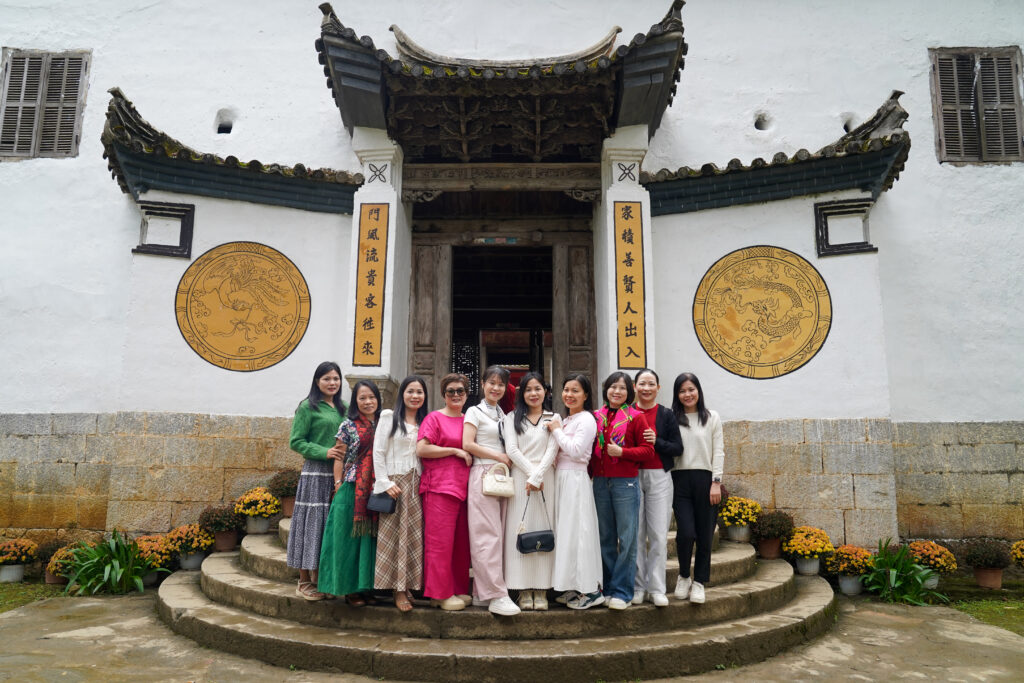 Tại Dinh họ Vương, kiến trúc mang tính đóng (nhiều lớp nhà, hành lang, cột gỗ). Khi chụp 1 mẫu, mục tiêu là biến mẫu thành “linh hồn” của ngôi nhà cổ. Góc chụp đẹp nhất là tận dụng các khung cửa hoặc dãy hành lang để tạo chiều sâu, khiến người xem cảm giác như đang kể một câu chuyện về quá khứ.